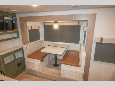 You won't be bound by boring travels any longer with this No Boundaries travel trailer! You can go just about anywhere with this rugged trailer, and you will find many features that will make your life easier while you're away. The entertainment center will give you something to do on a rainy day, and the kitchen will provide you with the tools needed to whip up a meal whenever you're hungry. The rear bathroom has a linen closet for your towels, and the dinette slide adds space for you to lounge in this trailer. Up front, you'll be able to rest on a sofa during the day, and you can reposition this sofa to showcase a Murphy bed at night for sleeping. This model also includes a walk-in pantry for snacks, dry goods, and more! When the optional Beast Mode Package on this model is chosen, you'll enjoy a 400-watt solar package, a fresh water filter, a Maxxair roof vent cover, plus a Beast Mode independent suspension for better handling.