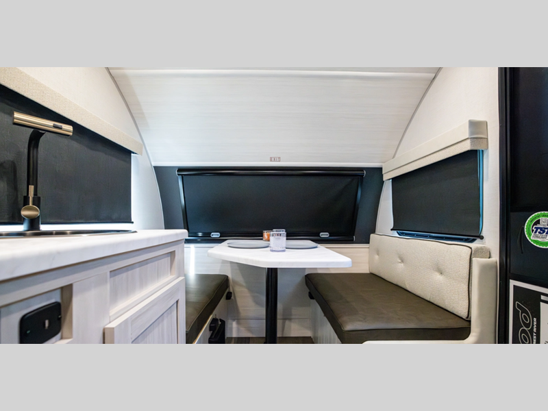 Sleeps 2 Length 23 ft Ext Width 8 ft Ext Height 10 ft 9 in Hitch Weight 470 lbs GVWR 5554 lbs Dry Weight 4054 lbs Cargo Capacity 1500 lbs Fresh Water Capacity 40 gals Grey Water Capacity 40 gals Black Water Capacity 30 gals Available Beds Murphy Refrigerator Type 12V Black Glass Convection Cooking Yes Number of Awnings 1 Water Heater Type Tankless AC BTU 15 btu TV Info 12V TV Awning Info 12' Shower Type Standard Electrical Service 30 amp Similar Floorplans