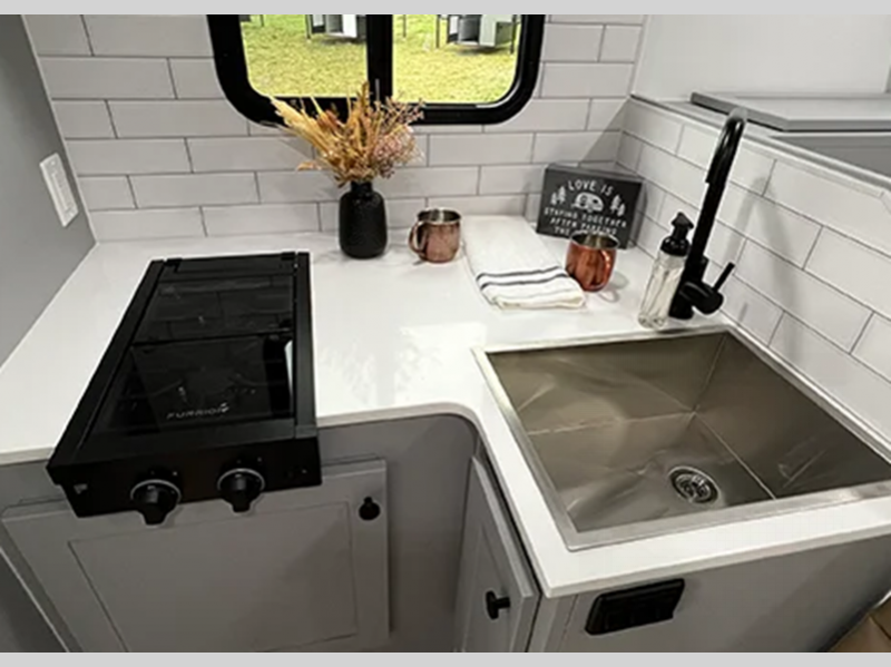 Sleeps 3 Length 14 ft 10 in Ext Width 7 ft 7 in Ext Height 8 ft Int Height 6 ft 8 in Dry Weight 2300 lbs Fresh Water Capacity 28 gals Grey Water Capacity 13 gals Black Water Capacity 5 gals Available Beds Queen Refrigerator Type 12V Convection Cooking Yes Cooktop Burners 2 Shower Size 40" x 40" Floor Length 7 ft 7 in LP Tank Capacity 20 lbs. Water Heater Type Truma Combi Truck Bed Size Long Number of LP Tanks 1 Body Style Hard-Side Shower Type Wet/Bath Shower