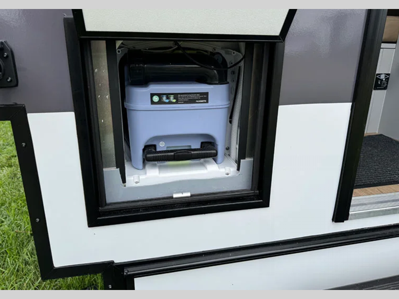 The AERIE is built with welded, tubular aluminum and composites and a fully enclosed and heated basement design, plus Truma awarded this truck camper with gold standard certification for the best insulation in its class! Inside, you'll find many comforts, including a spacious bath, convenient kitchen amenities, and comfortable seating and sleeping arrangements.